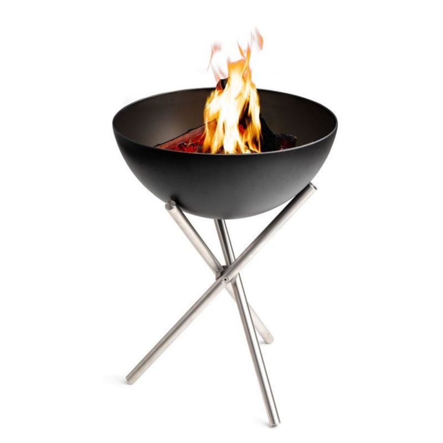 Cette grande demi-sphère noire en acier semble flotter sur son trépied en acier inoxydable. C'est le braséro parfait qui fait la différence pour d’agréables soirées autour du feu sur la terrasse ou au milieu du jardin. Le bol à feu se monte et se démonte en un rien de temps, le tout sans aucun outil.
